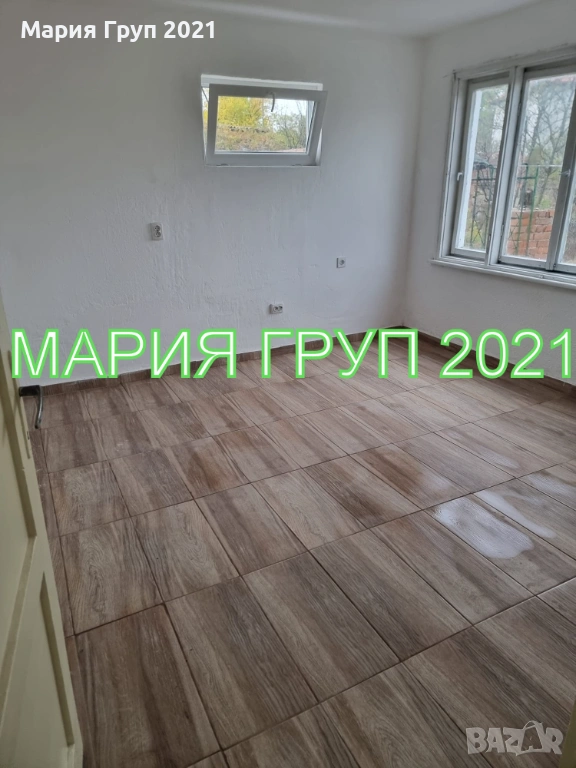 Първи етаж: голяма всекидневна, кухня, нова баня и тоалетна, веранда с входни стъпала, бетонови стълби към втория етаж!!!