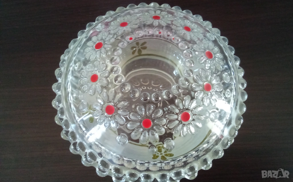 Старинна стъклена купичка с капак, в отлично състояние, без никакви забележки.