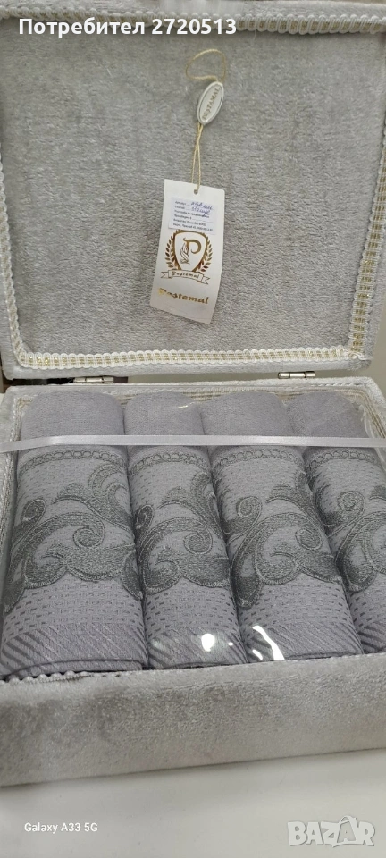 🎁 Подаръчен комплект хавлии – 4 броя (50/80 см) Цветове: сиво и бяло Елегантен и стилен подаръчен комплект хавлии, поднесен в луксозна текстилна кутия с изискан дизайн. Хавлиите са изработени от мек и попиващ материал, с красива релефна бродерия, която придава усещане за лукс и уют. Подходящ както за ежедневна употреба, така и като изискан подарък за специален повод. 🧺 Комплектът включва: ▫️ 4 х хавлии 50 x 80 см ✨ Характеристики: ✔️ Мек и нежен към кожата материал ✔️ Отлична попивност ✔️ Елегантна бродерия ✔️ Поднесен в красива подаръчна кутия ✔️ Подходящ за подарък за нов дом, сватба, юбилей 🎁 Стилен избор, който съчетава практичност и елегантност.