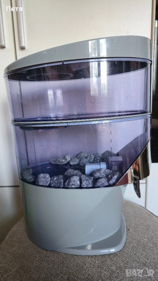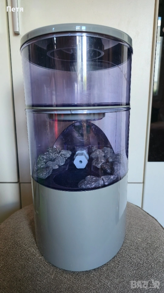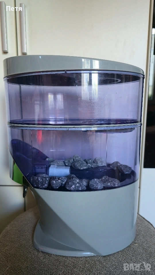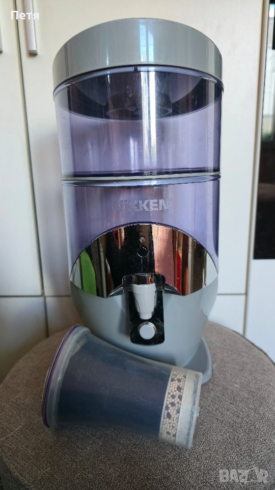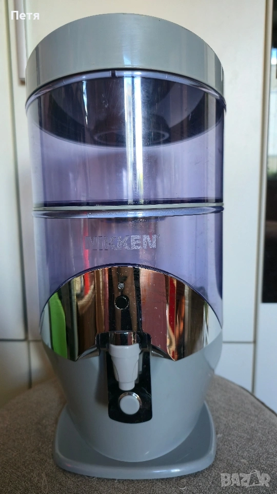 Продавам Nikken PiMag система за филтриране на вода. В добро състояние, с нормални следи от употреба. Препоръчително е скоро да бъде заменен филтърът. Гравитационна система за филтрация на чешмяна вода, свободно стояща, без да бъде свързвана с водопроводната мрежа и без електричество. ТЕХНИЧЕСКИ ДАННИ Размери: височина/ ширина/ дълбочина 42,3/22,5/32,5 см. Тегло: 3 кг Вместимост: Резервоар за пълнене 5,0 литра. Резервоар за съхранение 5,5 литра. Сила на магнита: 1200 гауса. Смяна на компонентите: Петстепен филтър – 3 месеца или 900 л/ Което бъде достигнато първо/. Минерални камъни – 1 път на година Пълна информация за продукта може да намерите тук - https://www.nikera.eu/produkt/nikken-pimag-waterfall/ . В момента наличността е изчерпана.