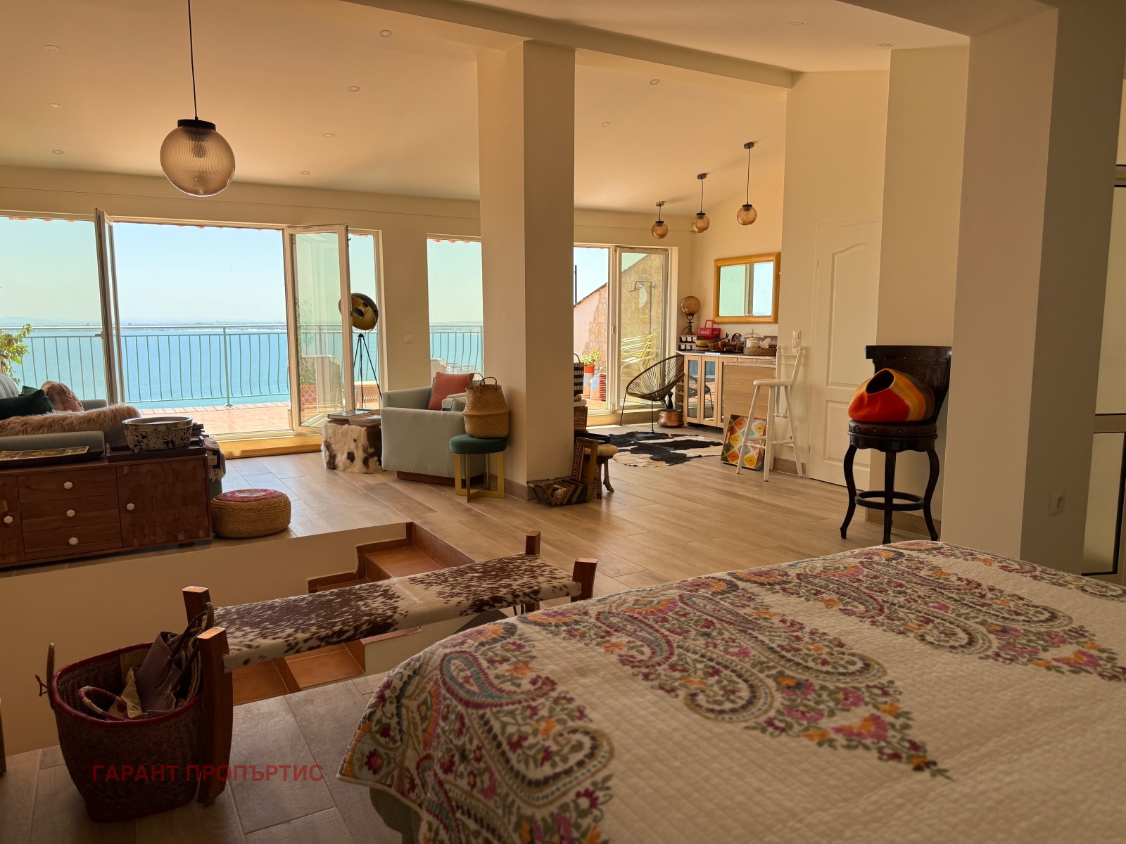 Предлагаме на вашето внимание впечатляващ многостаен мезонет с фронтална морска панорама от всеки етаж, разположен в тиха и живописна част на Свети Влас. С обща площ от 210 кв.м, този артистичен имот съчетава естетика, простор и уединение. Интериорът носи почерка на световноизвестна актриса и певица, съвместно със съпруга ѝ балетна звезда от Ню Йорк, което придава на пространството характер и стил, каквито рядко се срещат.
