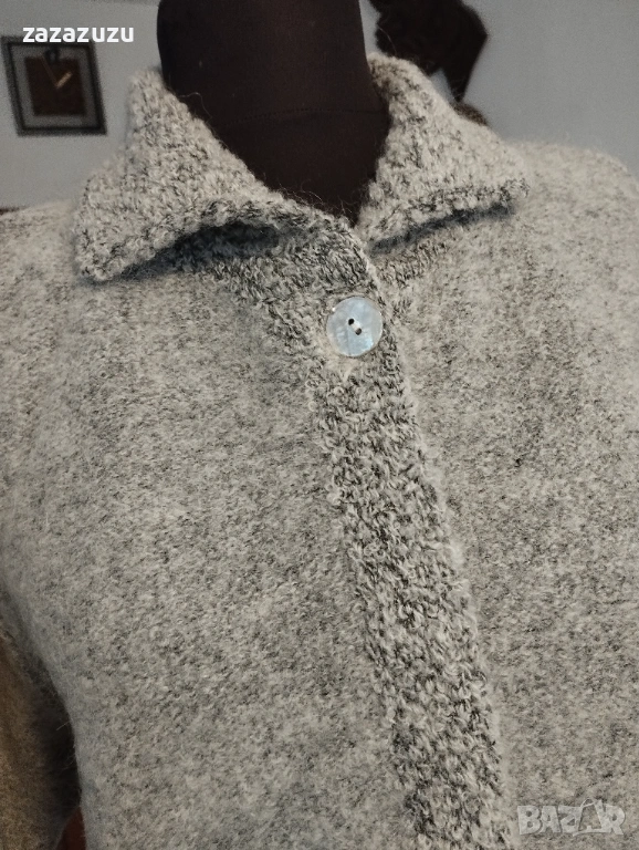 ВЪЛНА, МОХЕР И АНГОРА дамса жилетка, много мека и приятна на допир, снимките показват реалния светлсив цвят. Дължина на ръкава 60см., дължина на жилетката от тила до долу 70см., гръб 44см.