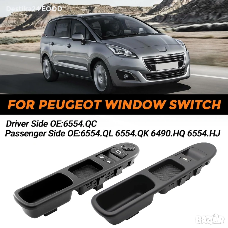 бутон ел стъкло, бутони за стъкла, Peugeot 207, Citroen C3, 6554QC, авто части, бутон прозорец