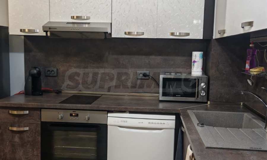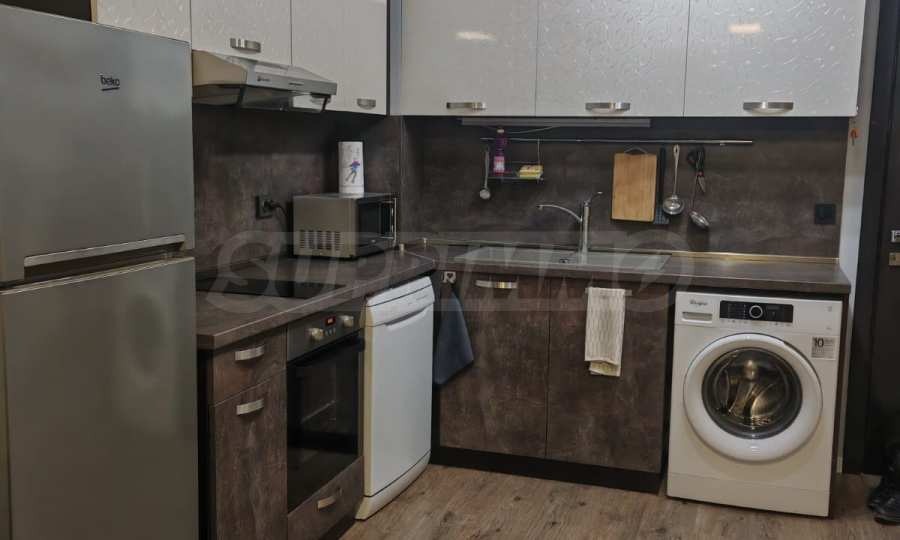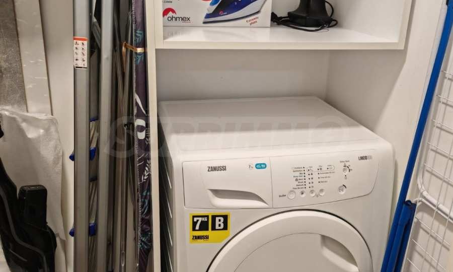 Жилището е напълно обзаведено и оборудвано, предлага се с всичко необходимо за живеене като мебели и ел. уреди, има климатици.