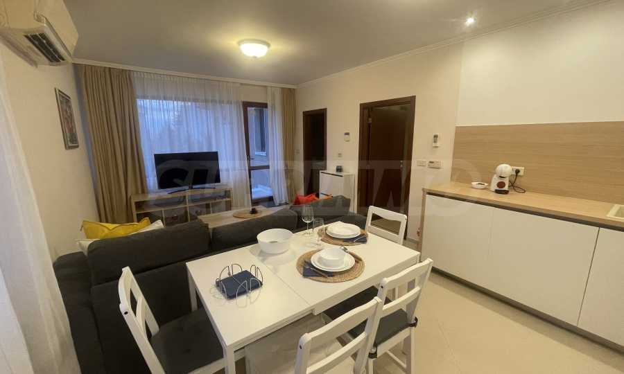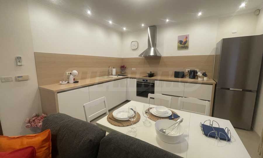 Апартаментът е част от по-голяма къща, с отделен вход, собствена тераса, веранда, барбекю зона и възможност за две паркоместа в паркинга на сградата. Напълно обзаведен и оборудван е с всичко необходимо за живеене като мебели и ел. уреди.