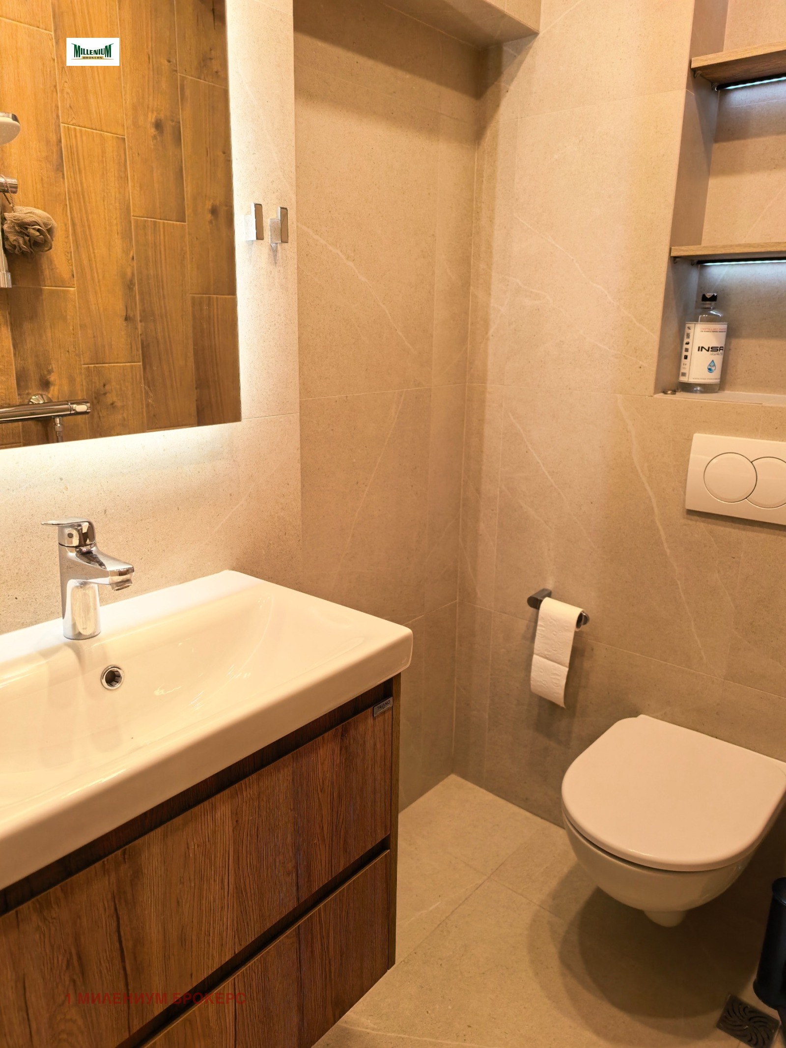 Напълно обзаведен по индивидуален проект, с вградени уреди. Във всяка от стаите има монтиран климатик.