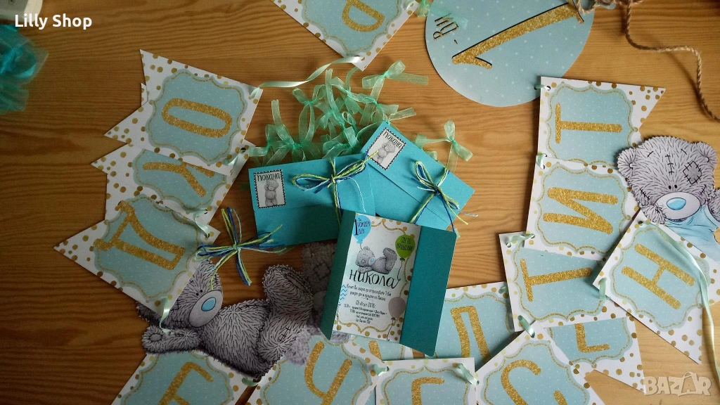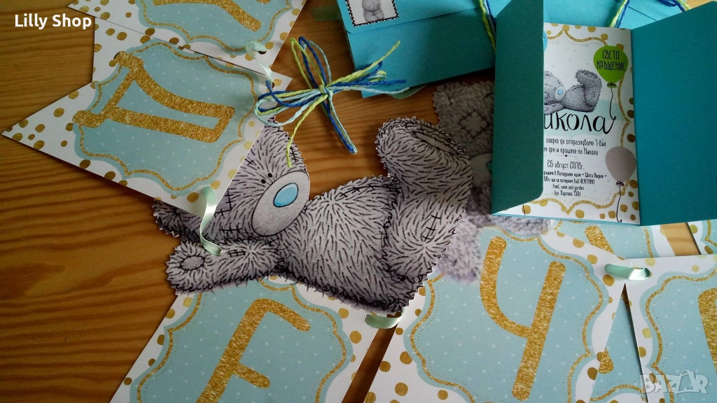 Покани, банер за рожден ден, мече Ници / bear Nici