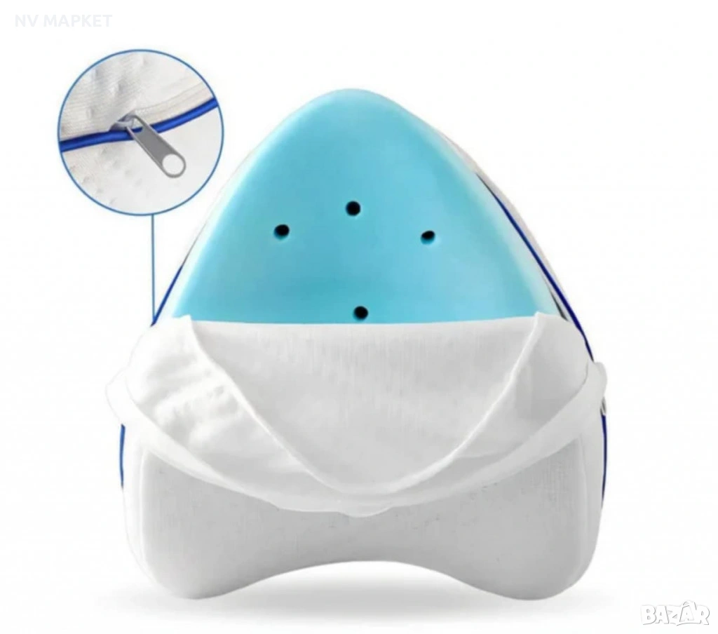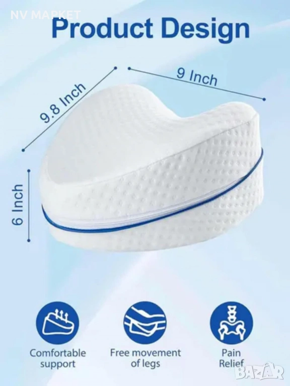 ОРТОПЕДИЧНА ВЪЗГЛАВНИЦА ЗА КРАКАТА, ЗА НАМАЛЯВАНЕ НА ДИСКОМФОРТА В ГЪРБА, БЕДРАТА, КРАКАТА, КОЛЕНАТА И ИШИАСНИЯ НЕРВ - Като спите настрани, вие не спите напълно изпънати. Горният ви крак пада пред вас, оказвайки натиск върху гърба ви, тазобедрените ви стави се усукват и коленете ви се докосват, причинявайки болка. Тази вйзглавница е най-добратаза крака за тези, които търсят облекчение, тъй като възглавницата поддържа удобно краката и коленете ви, за да осигури правилно подравняване и позициониране при сън, за да елиминира тези болезнени точки на натиск.
