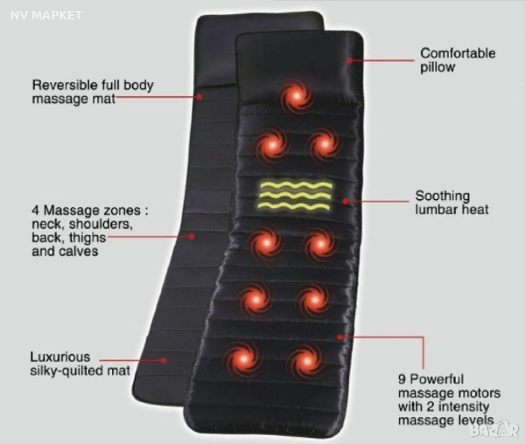 Масажен дюшек, с 9 мотора – за релаксация и цялостен масаж на тялото → Обява 53192238