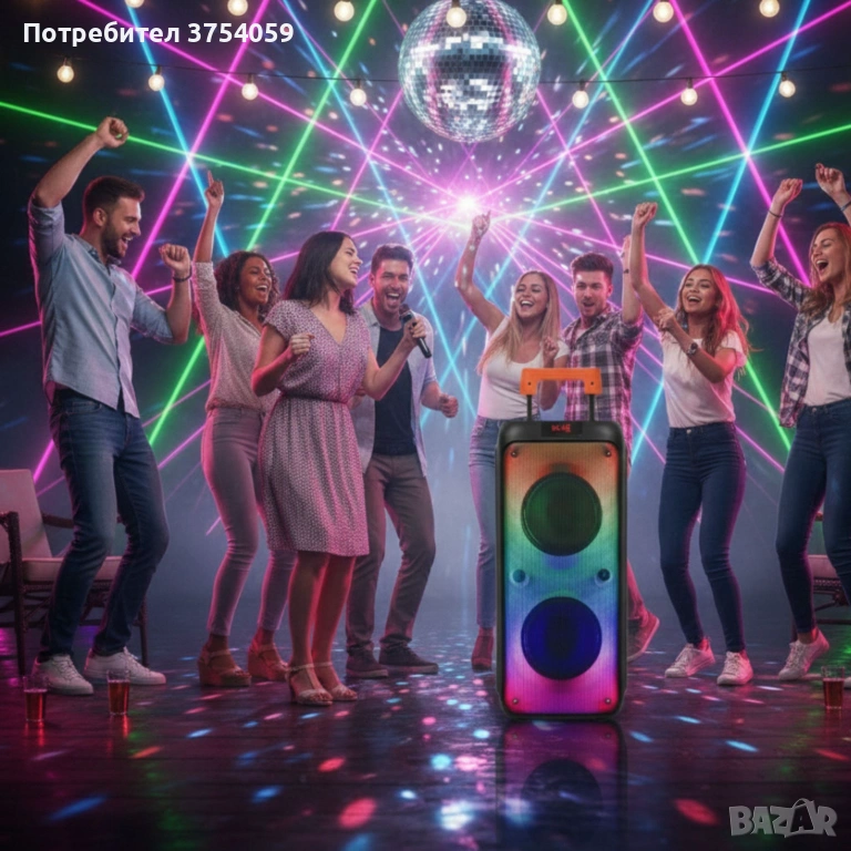 Допълнителни функции: включен микрофон, TWS функция за свързване на две колони, LED светлинни ефекти, включен адаптер за зареждане.