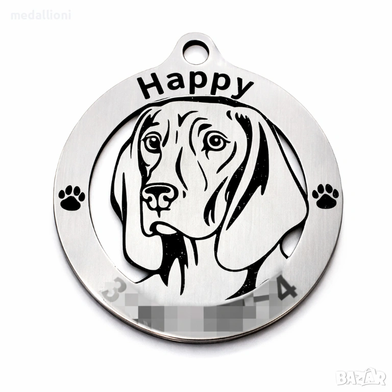 Персонализиран медальон за куче с гравиране – име и телефон (за всички породи)