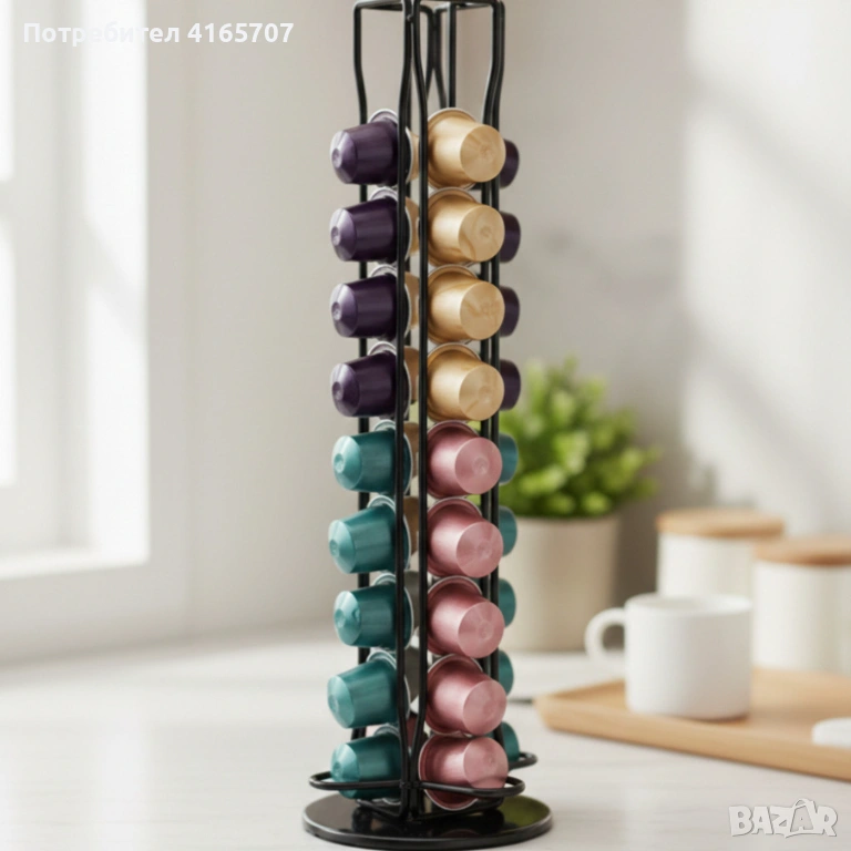 Метална въртяща се стойка Cheffinger за 40 капсули Nespresso – ред и бърз достъп до любимото кафе → Обява 53193210