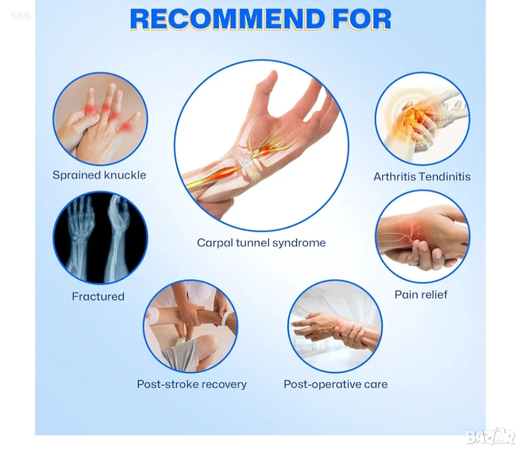 Универсална за двете ръце – Тази шина за ръка и китка пасва на двете ръце, предлагайки гъвкава опора. Тя стабилизира цялата област на ръката, включително китката и пръстите, предотвратявайки движението на пръстите да възпрепятства възстановяването. Насърчава възстановяването на ръката.