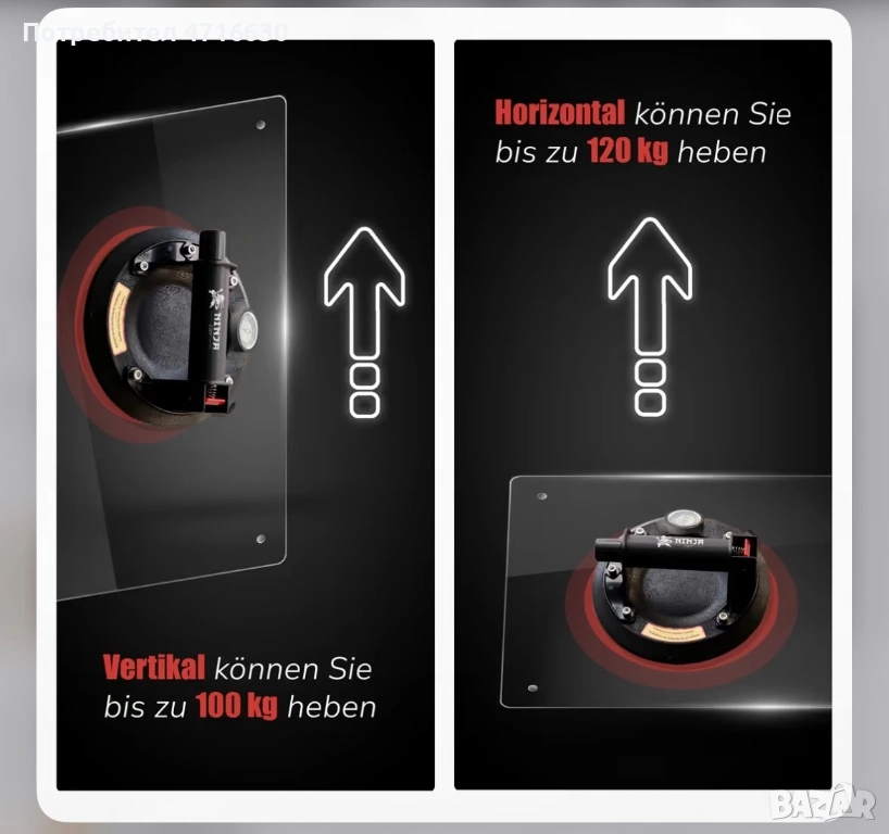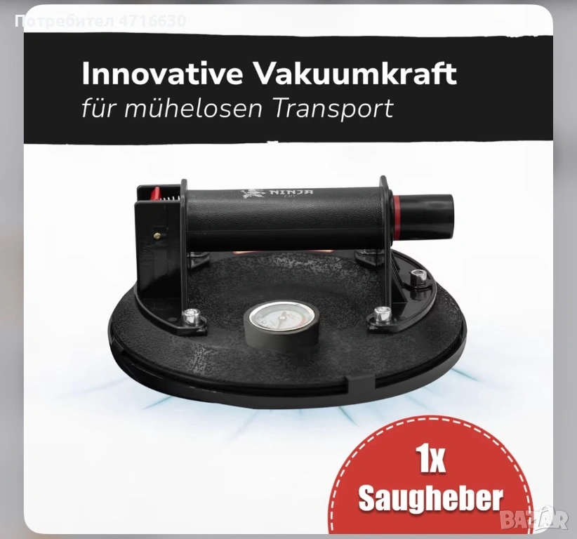 Нова вендуза с манометър с товароподемност до 300 кг