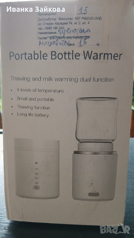 Електрически нагревател за мляко и пюре или каши. Може да се ползва и в зарядното на автомобила.