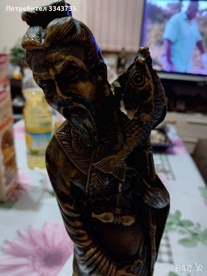 Китайска статуетка,изобразяваща рибар,често свързана с добър късмет. → Обява 53194359
