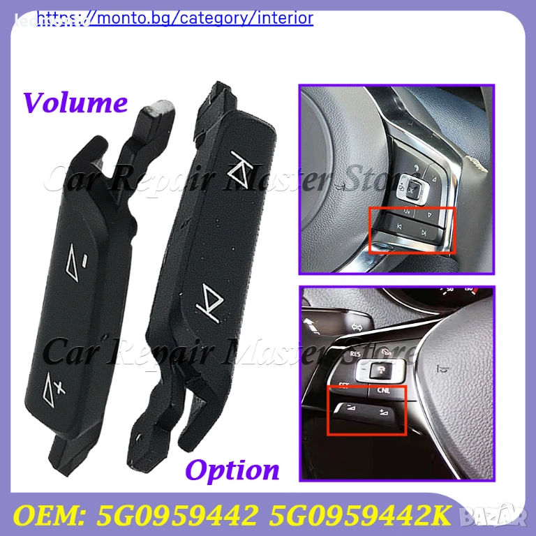 Капаци Бутони Волан VW Golf 7 7.5 Passat B8 Tiguan Touran Jetta – 5G0959442 / 5G0959442K – Monto.bg