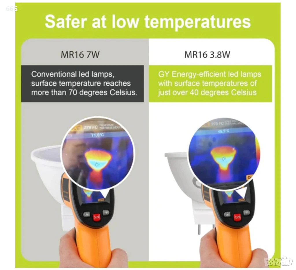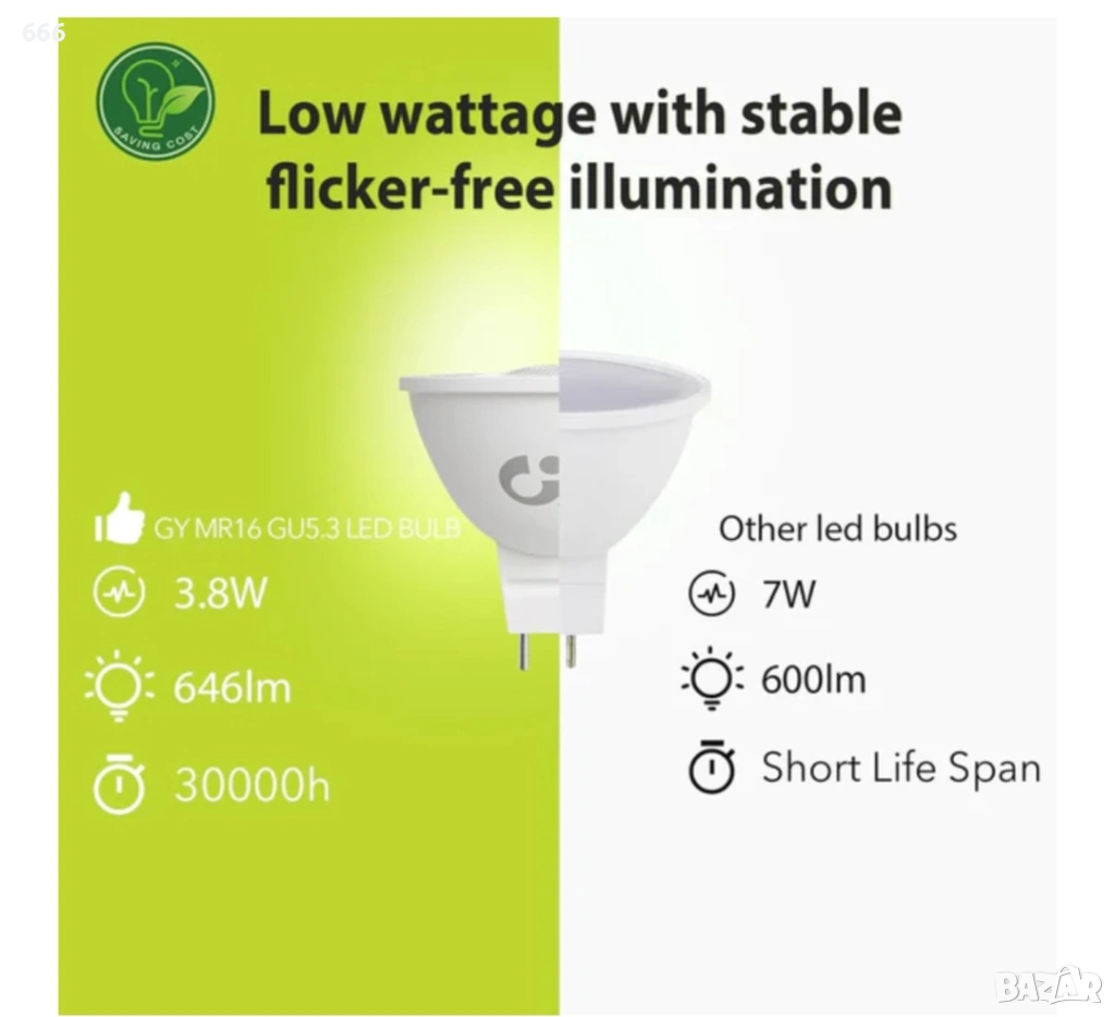 ✅ GU5.3 LED прожектор (MR16), 3.8W = 50W заместител на халогенна крушка