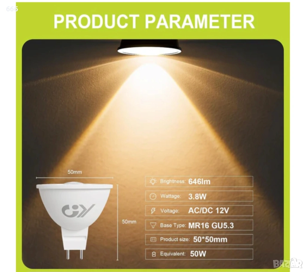 Надстройте осветлението си с LED прожектора GY GU5.3 (MR16) , осигуряващ ярки 646 лумена с мощност само 3,8 W. Този енергийно ефективен LED прожектор замества традиционната халогенна крушка от 50 W , спестявайки до 92% енергия , което го прави идеален за дългосрочно осветление в домове, офиси, магазини или галерии.