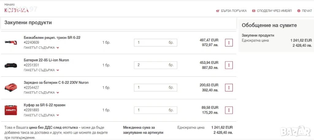 Магазинската цена е: 1 241,62евро БЕЗ ДДС (С ДДС е 1 513евро)