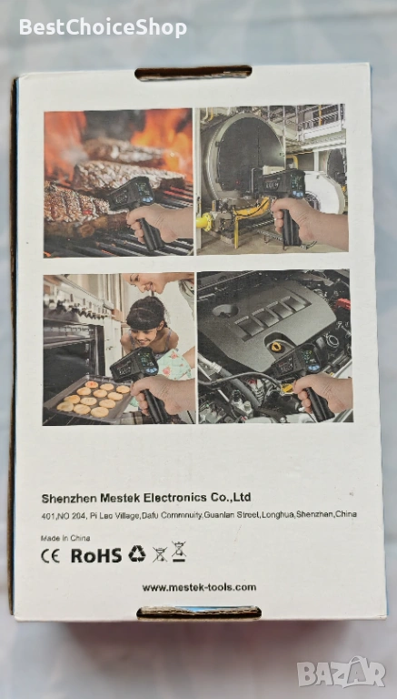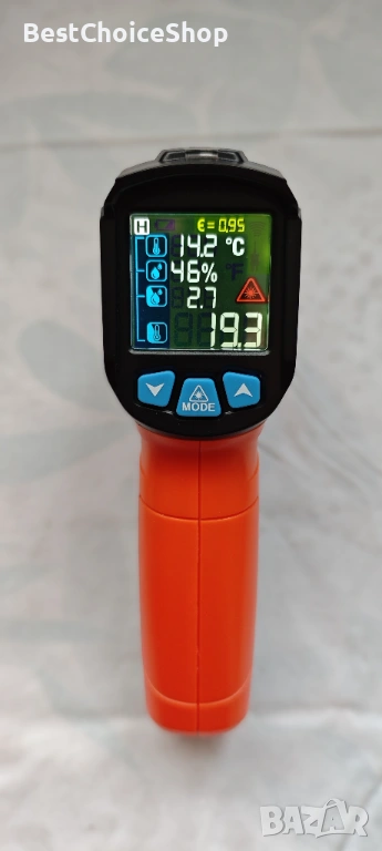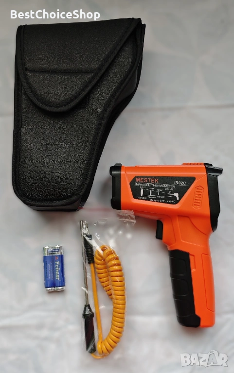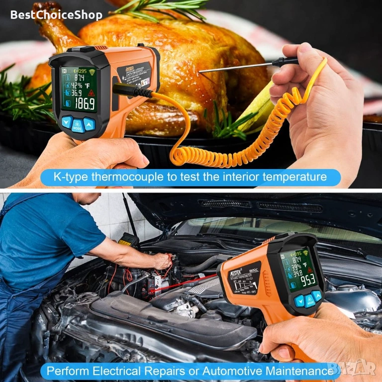 Инфрачервен термометър MESTEK, цифров лазерен температурен измервател с K-сонда, инфрачервен пирометър -50°C до 800°C, безконтактен цветен LCD дисплей, регулируема емисионна способност за кухня, печене и промишленост
