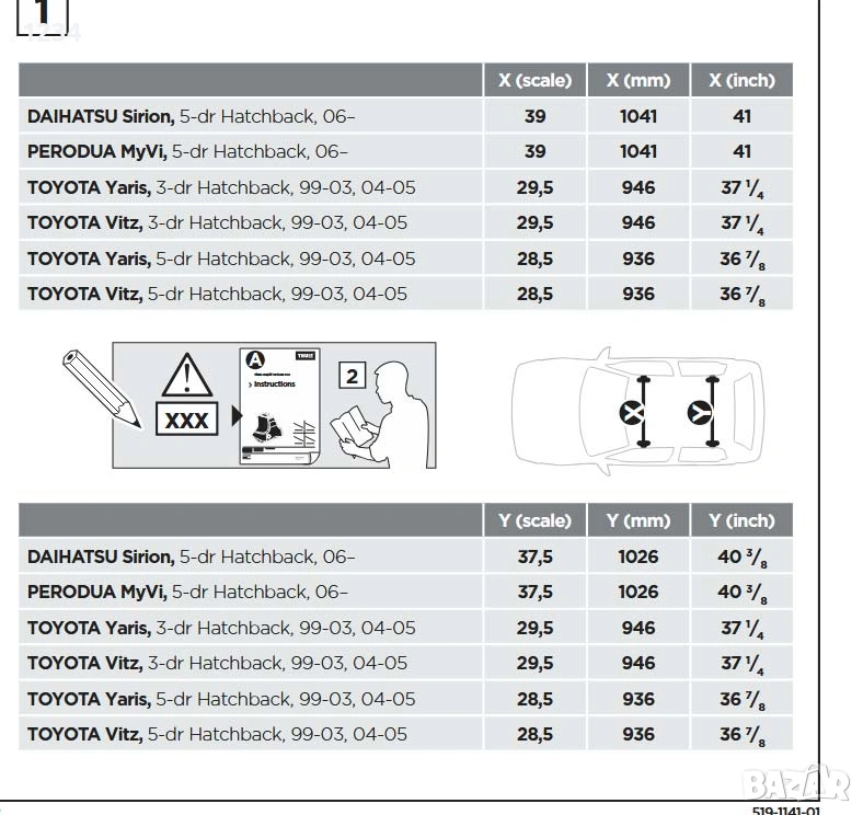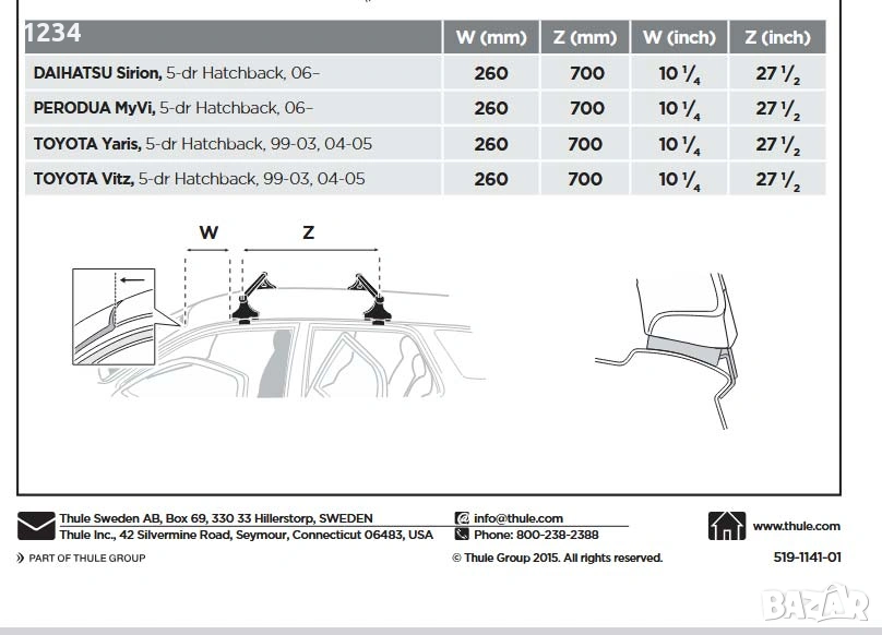 Багажник напречни греди THULE рейки за TOYOTA Yaris, 1999-2005г → Обява 53194795