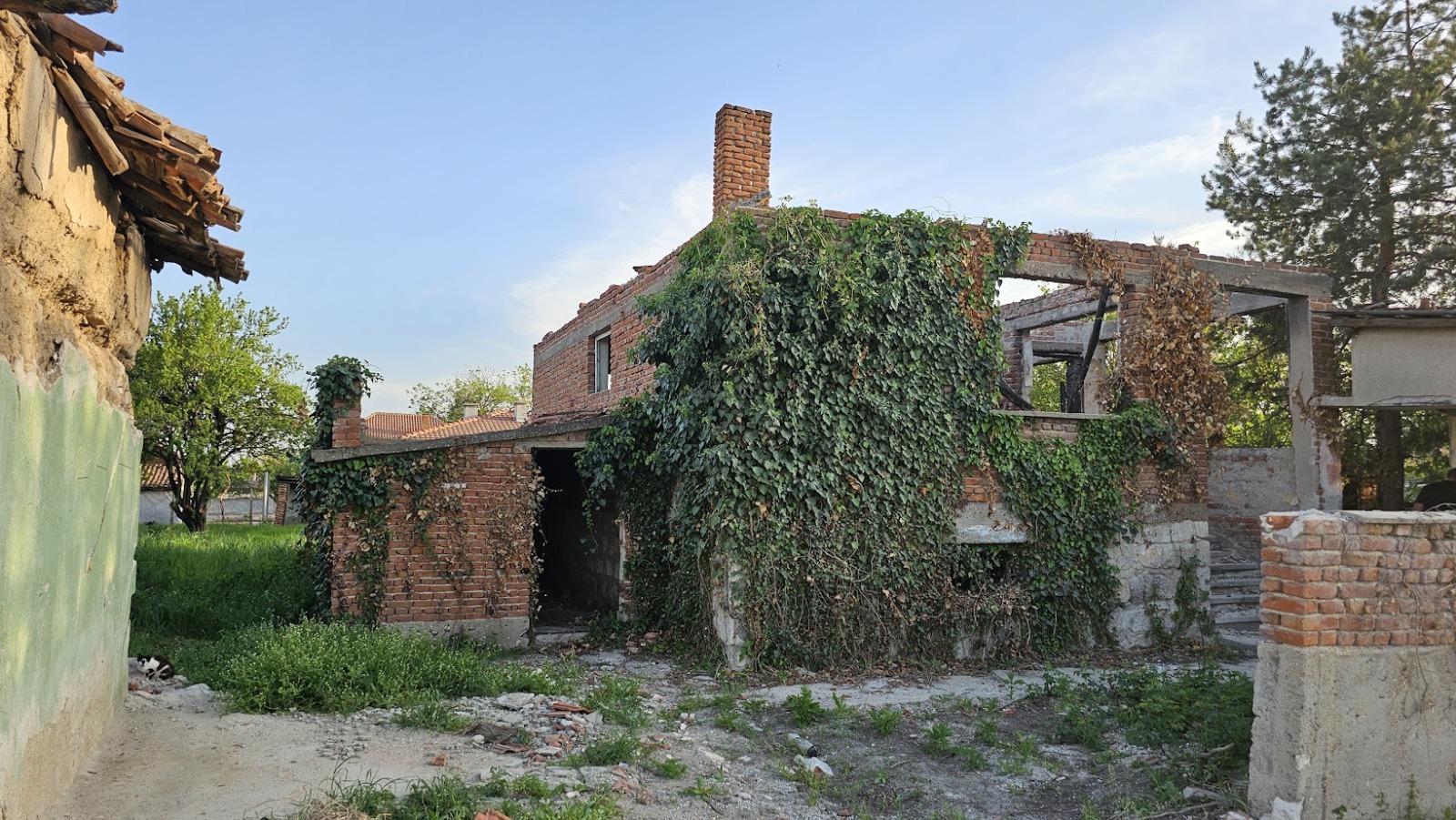 Ъглов парцел с няколко законни по документи постройки - къща масив с гараж за голям ремонт, втора къща керпич, допълнителна пристройка - стая. Имотът може да бъде реставриран или позволява изцяло ново строителство върху съществуващи по документи постройки. Намира се в близост до прелеза от страната на центъра. Предстои включване към новата канализация на селото. Има партиди за ток и вода.