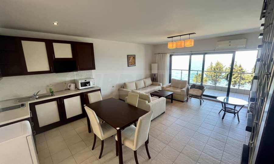 Комфортният апартамент с фронтална гледка море, който представяме за продажба, е готов за нанасяне тристаен имот от 123 кв.м, разположен в комплекс на първа линия в Созопол. Локацията е удобна за обитаване, инвестиция и семеен отдих, до Райския залив в местност Буджака.