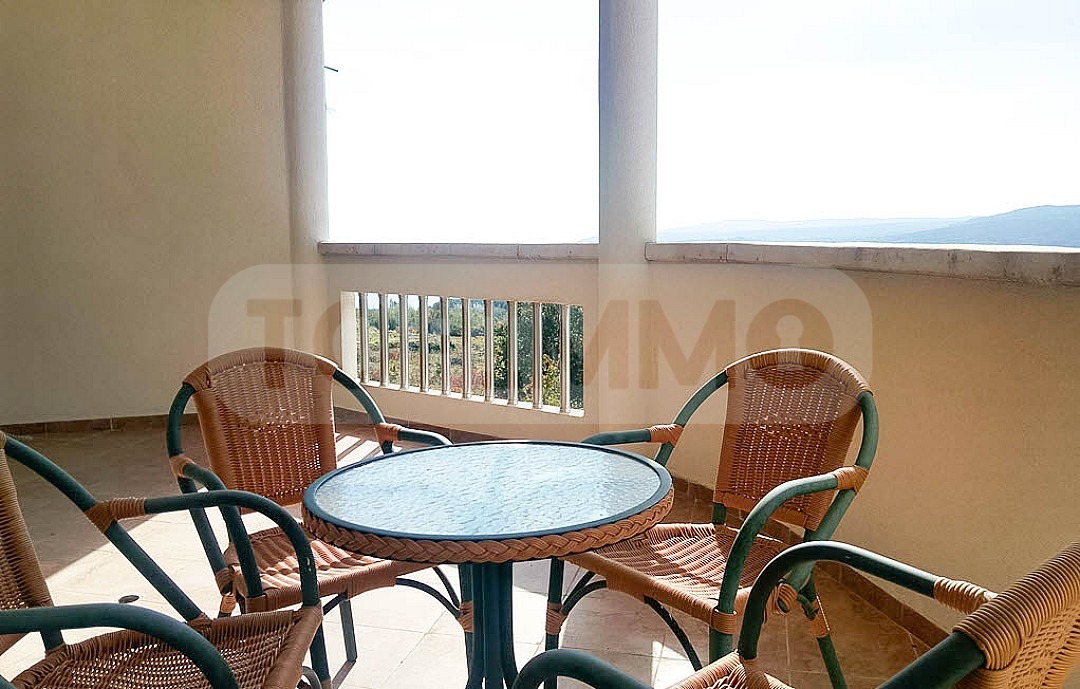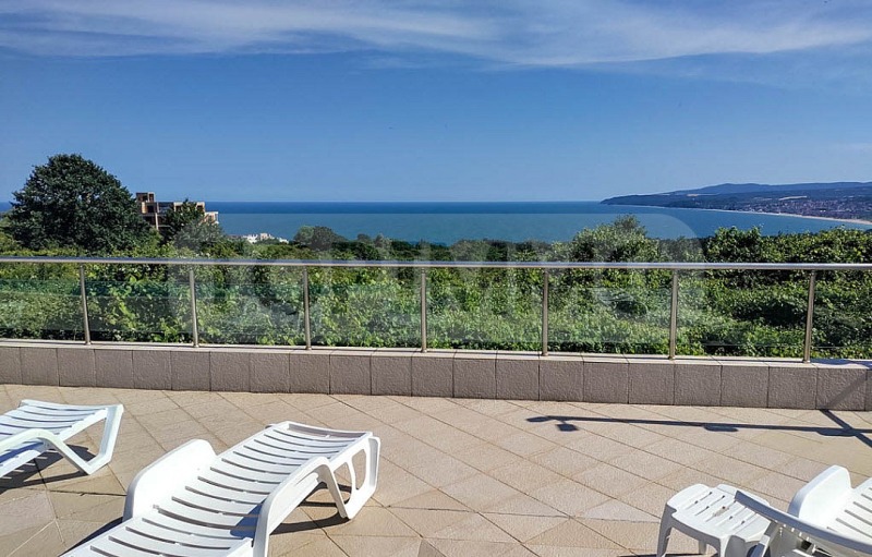 Голяма тераса с изглед към пищния пейзаж около комплекса