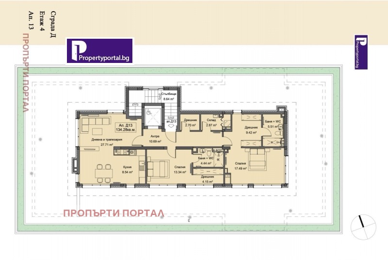 Агенция за недвижими имоти Пропърти Портал предага Пентхаус апартамент на четвърти (последен) етаж в сграда Г и Д.