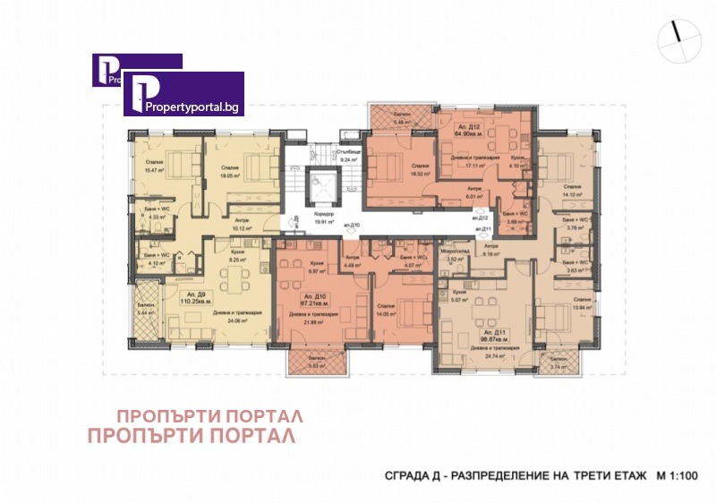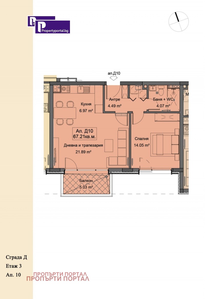 Агенция за недвижими имоти Пропърти Портал предага двустаен ЮЖЕН апартамент на 3 ти етаж в сграда Д.