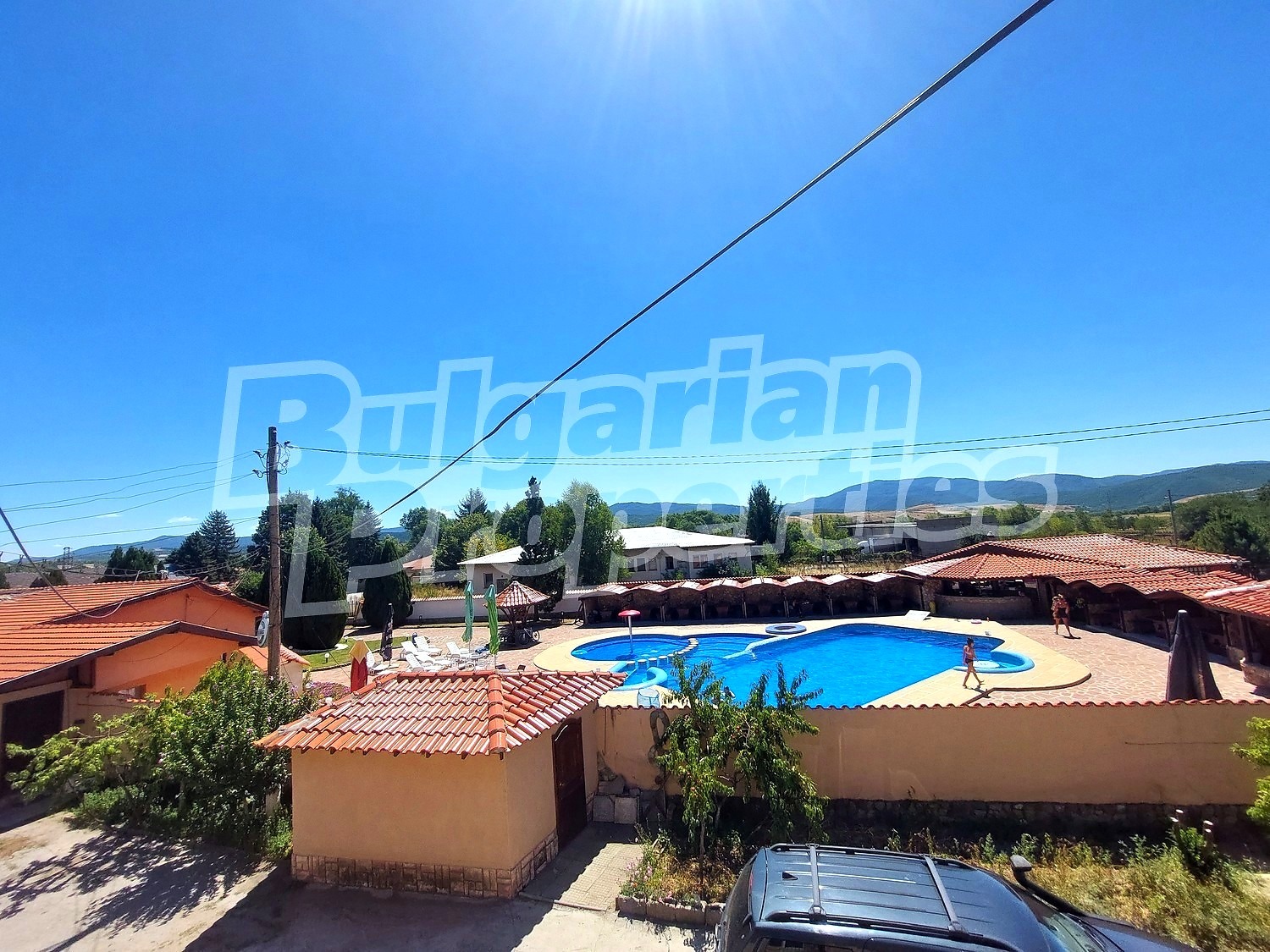 Външен басейн с бар и ресторант - в едната част на имота е разположен външен басейн, около който е оформен летен бар с капацитет от 160 седящи места. Барът разполага с оборудвана кухня, барбекю и чеверме, което го прави идеално място за събития и отдих. Има съблекални и тоалетни за посетителите на басейна. Бизнесът е работещ и успешно функционира целогодишно.