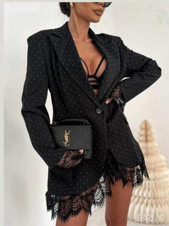 Черно Елегантно Сако с Дантела и Камъни , снимка 1 - Сака - 53195659 Черно Елегантно Сако с Дантела и Камъни , снимка 2 - Сака - 53195659 1/2
