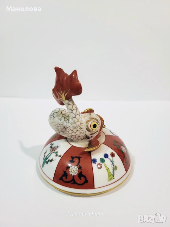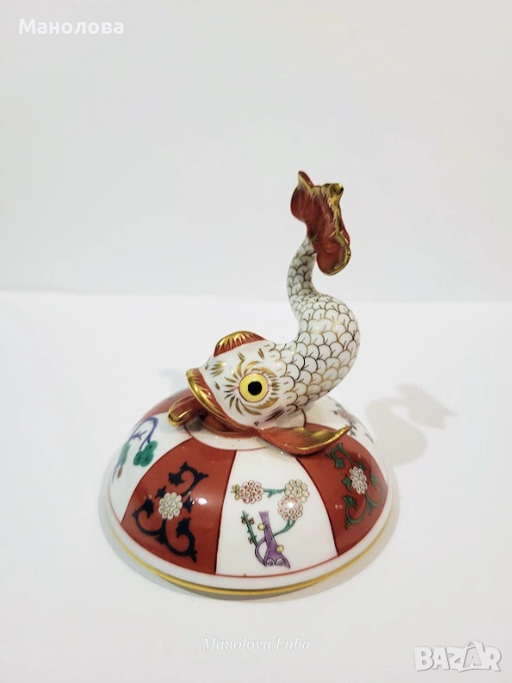Изискания буркан с капак е изработен от престижния унгарски производител Herend.