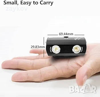 【Малък, но издръжлив】Компактен алуминиев корпус; по-малък от другите LED фенерчета, здрав и издръжлив, уникална система за охлаждане, която изисква време за работа на LED светлината. Лесно сваляща се мини лампа за велосипеди, подходящи за градски пътувания, планински велосипеди, офроуд велосипеди и др.