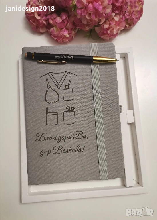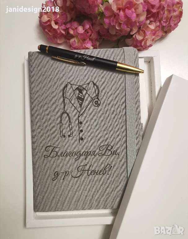 Подаръчен комплект за лекар. гравирани тефтер и химикал в кутия → Обява 53196345