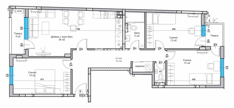 Оферта 68700 - Предлагаме ви за продажба 4 - стаен нов апартамент в новоизградена луксозна сграда, отличаваща се със съвременна и стилна архитектура в един от най- развитите квартали на града, с Перфектна локация на приятно и спокойно място в близост до училища, детска градина, паркове и удобен транспорт - ОТЛИЧНА ИНВЕСТИЦИЯ !!! Жилището е с изложение юг / север и се състои от слънчева дневна с трапезария и кухненски бокс, три самостоятелни и комфортни спални, голяма и удобна баня с WC, втора тоалетна, широко входно антре с място за перално и две тераси !!! Сградата се строи от строителна компания с дългогодишен опит в бранша с редица завършени обекта в града. Изпълнението е на изключително високо ниво. Жилищата са завършени съгласно всички изисквания на съвременното строителство - блиндирана врата, 6 - камерна дограма, МДФ вътрешни интериорни врати. Сградата ще разполага с още: луксозно завършени общи части, италиански хидравличен асансьор, двойна хидро и топлоизолация. Можем да покажем готови сгради на същия строител,за да придобиете представа за качеството на изпълнение. Има възможност за закупуване на партерни и подземни Гаражи. Осигурено Банково Финансиране или изплащане на вноски в рамките на строителството !!!