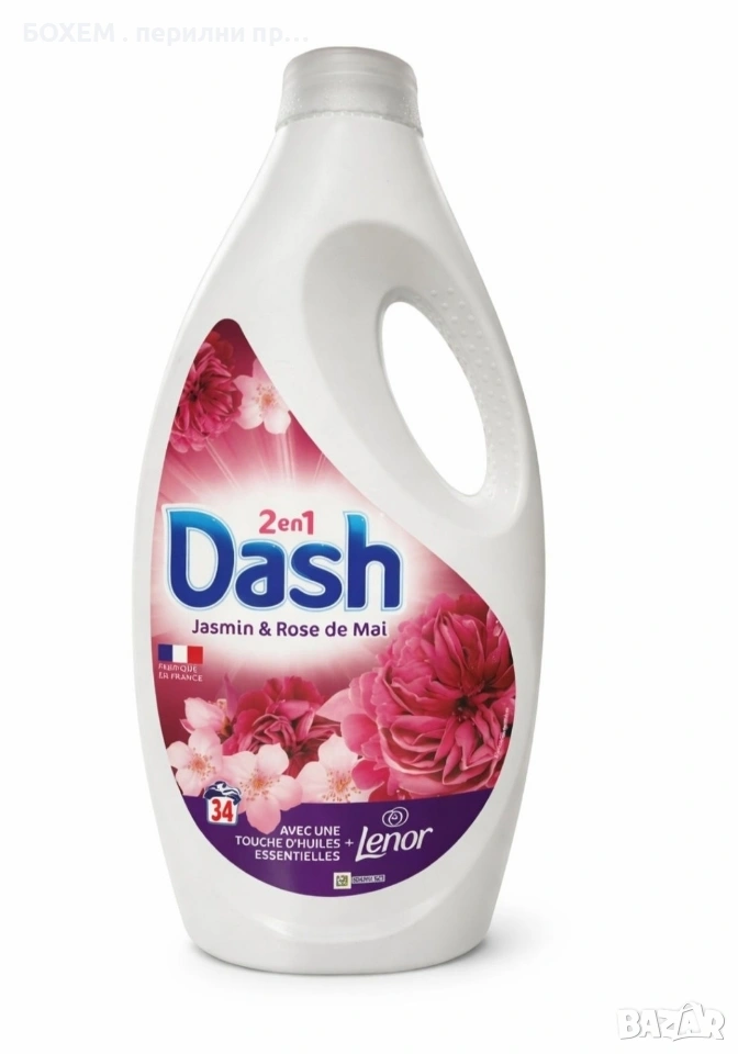 Осигурява отлично изпиране и дълготраен, нежен аромат на жасмин и майска роза.