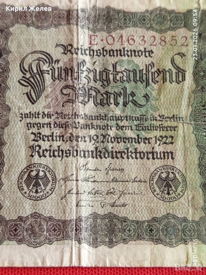 Райх банкнота 50 000 марки1922г. Германия уникат за КОЛЕКЦИОНЕРИ 53179 → Обява 53196913