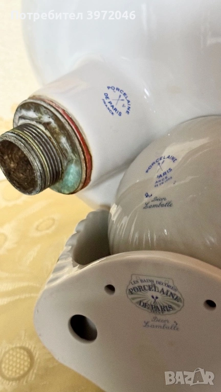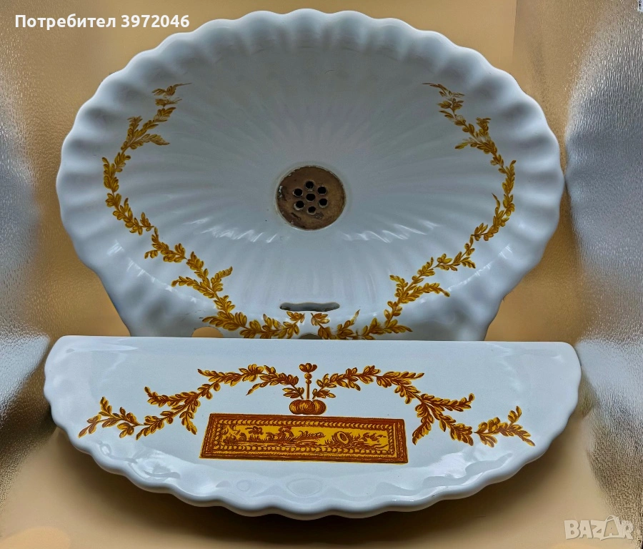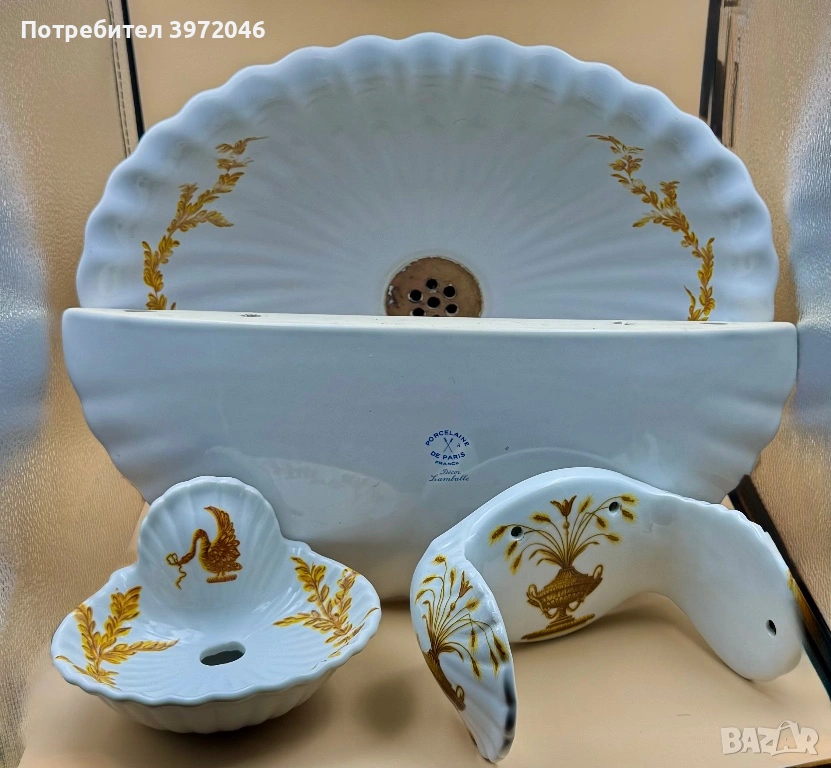 Това не е кухненски или сервизен порцелан, а интериорен санитарно-декоративен комплект, рядко оцелял цял.