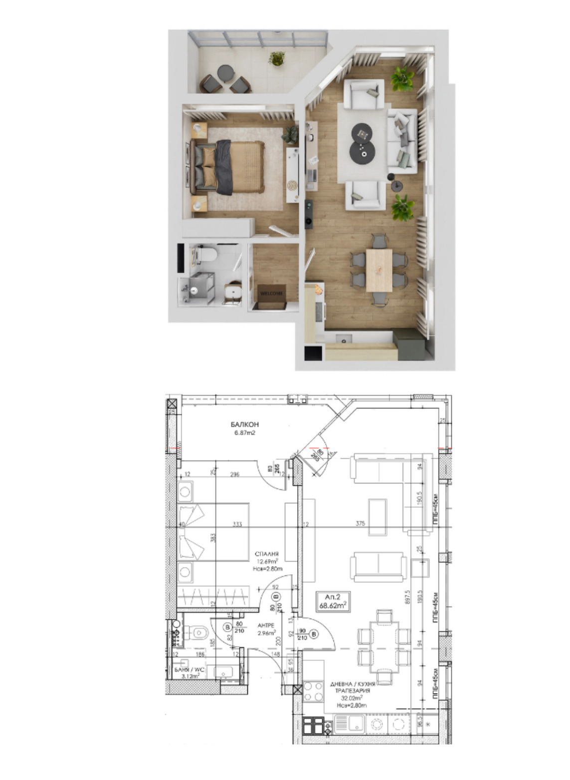Жилищата в проекта са светли и просторни, с френски прозорци и височина на таваните - 2,80 метра.