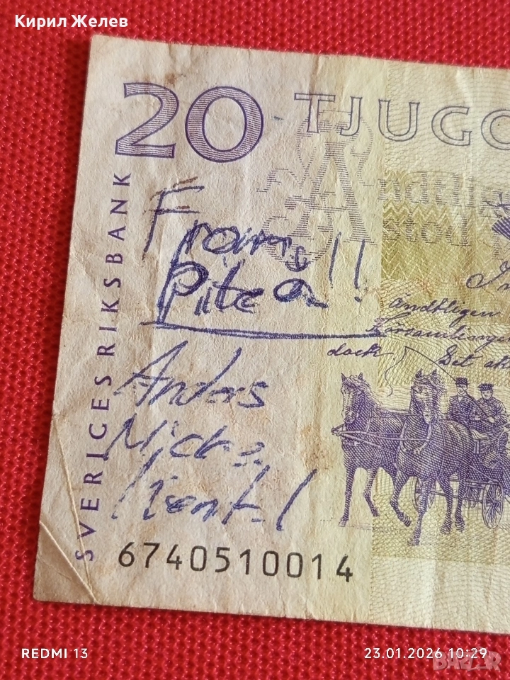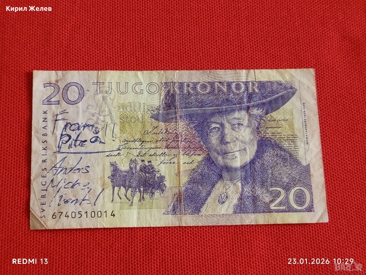 Банкнота 20 крони Швеция стара за КОЛЕКЦИЯ ДЕКОРАЦИЯ 53300 → Обява 53197353