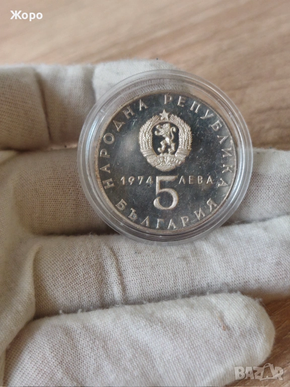 5 лева 1974 година България "30 години от Деветосептемврийското антифашистко народно въстание 1944". Оригинална сребърна монета в отлично състояние.