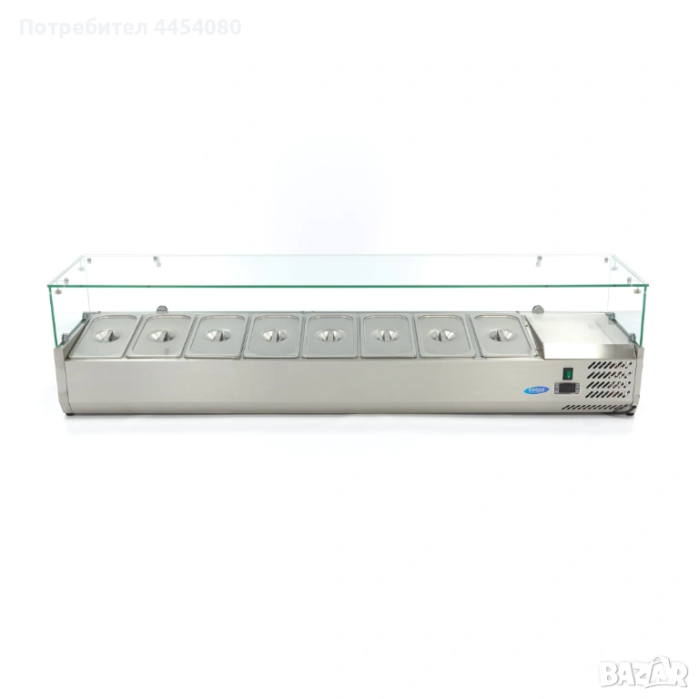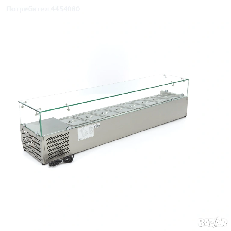 Идеалното решение за съхранение и бърз достъп до свежи съставки в професионалната кухня. Тази охлаждаща витрина е проектирана за интензивна B2B употреба в ресторанти, хотели, кафенета и кетъринг обекти. Разполага със статично охлаждане за равномерна температура и капацитет за 8 GN 1/3, което осигурява оптимални условия за съхранение без риск от замръзване. Здравата конструкция, лесното управление и енергийната ефективност я правят надежден избор за ежедневна работа. Работи на 230 V с мощност 0,2 kW и компактни размери 180 × 39,5 × 43,5 см. За повече информация и поръчка се обадете на посочения телефон. Доставка: до 499 лв – 10 лв, над 499 лв – безплатна.