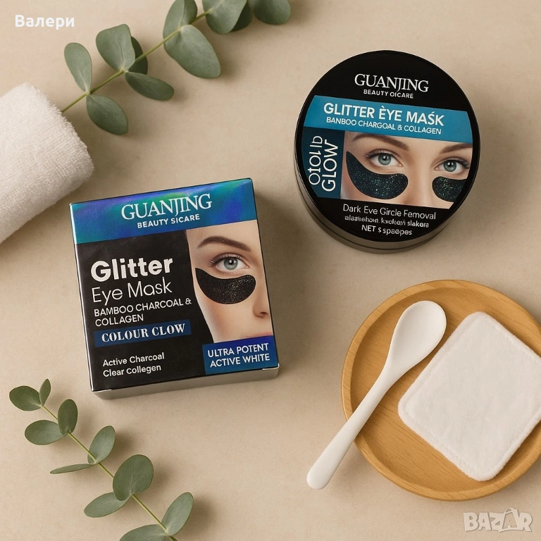 Хидрогелни блестящи лепенки за очи с бамбуков въглен и колаген