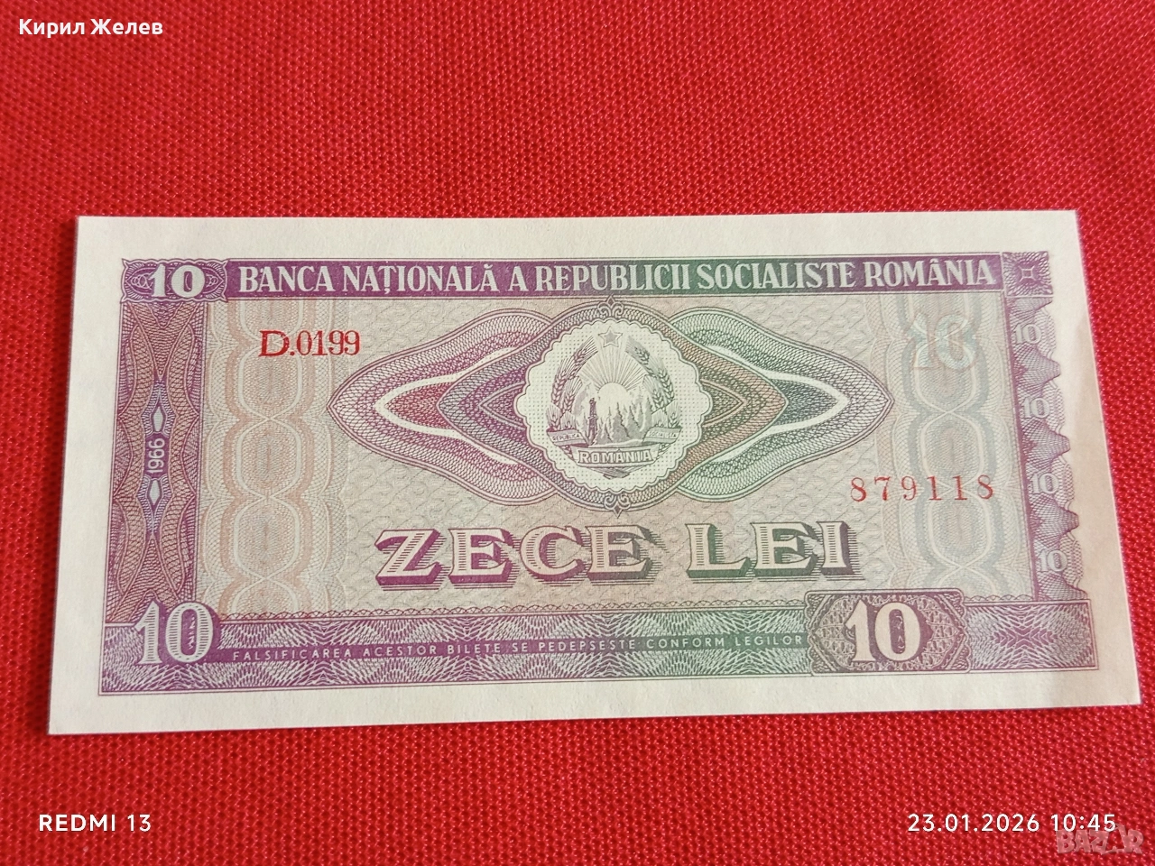 Банкнота 10 лей 1966г. Румъния перфектно състояние за КОЛЕКЦИОНЕРИ 53304 → Обява 53197561