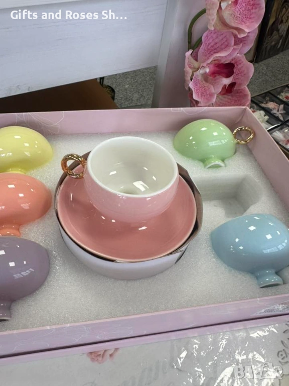 Порцеланов сервиз за кафе с 6 чашки в различен цвят → Обява 53197638