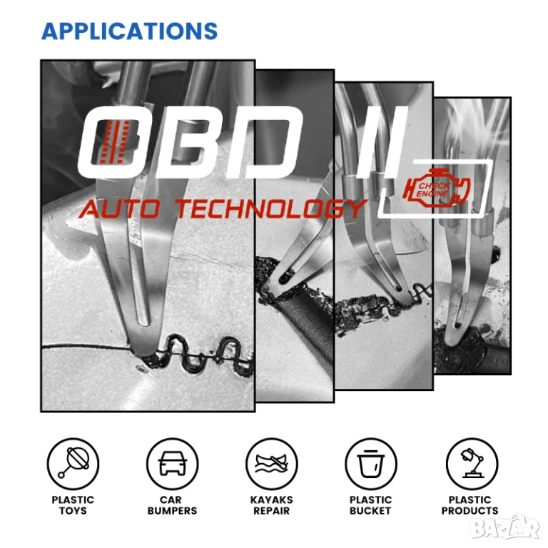 Приложение: след като даден пластмасов детайл бива ремонтиран с армиращи телчета и/или армираща мрежа, чрез помощта на този поялник може да загладите ремонтираната повърхност, като ползата е, че почти няма да си личи ремонтирания отсег.