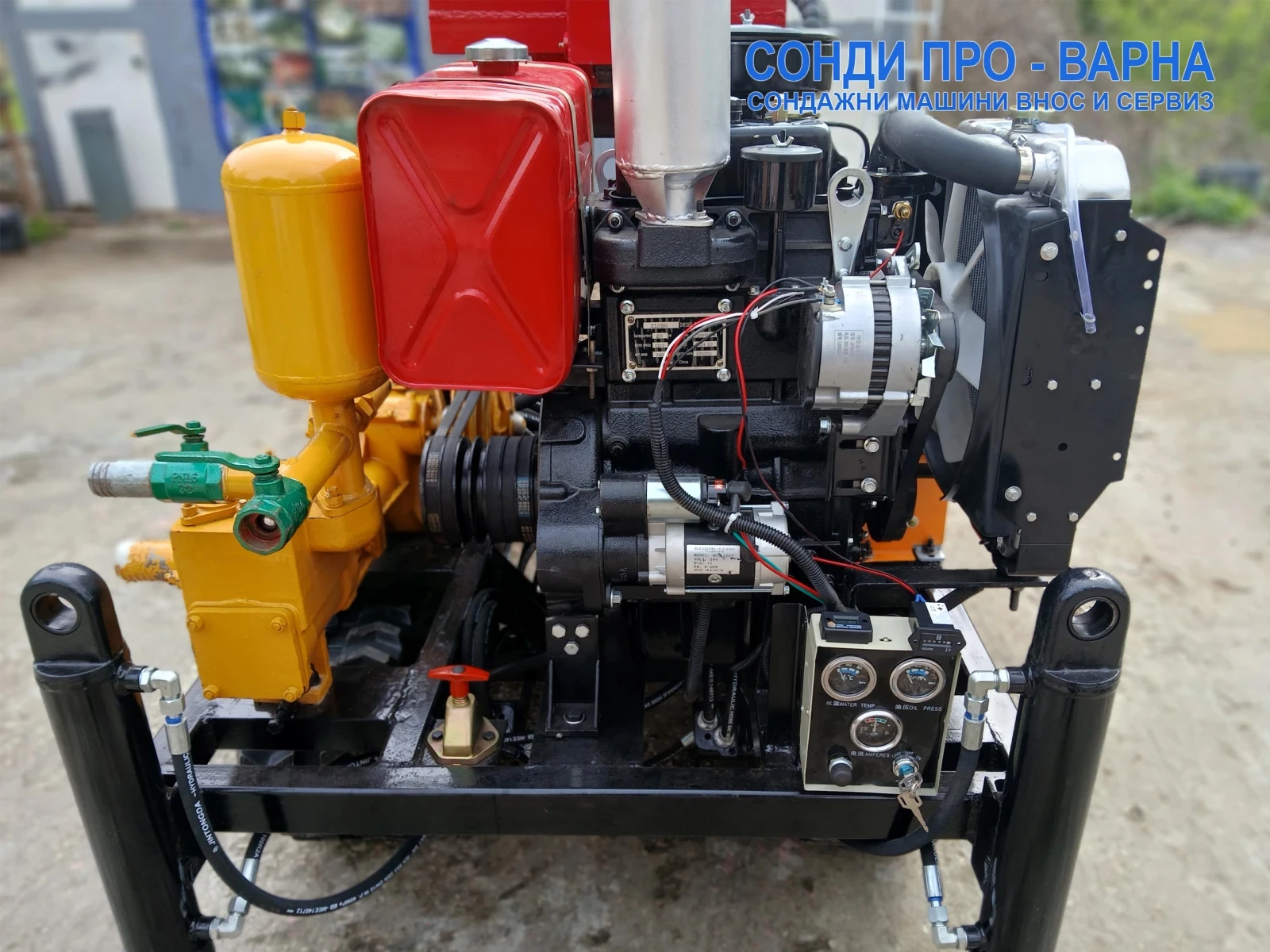 сонда за вода/ . ВНИМАНИЕ: СЕРИЯ " SUPER PRO" Е МОДЕРНИЗИРАНА ВЕРСИЯ НА СОНДАЖНА МАШИНА СПЕЦИАЛНО ЗА ВЪЗДУШНО СОНДИРАНЕ ОТ СОНДИ-ПРО ВАРНА! . НОВО ЗА ВЪЗДУШНО СОНДИРАНЕ: НОВА МОДЕРНИЗИРАНА ВЕРСИЯ НА СОНДАЖНА МАШИНА Track-SuperPro180CN с 2-цилиндров Дизелов двигател 35HP, ВЕРСИЯ ПРО v. 35 по проект инженери на СОНДИ ПРО-ВАРНА! . . - ЗА ВЪЗДУШНО СОНДИРАНЕ: ДВА ХИДРОЦИЛИНДЪРА НА МАЧТАТА! - НОВО (ЗА ВЪЗДУШНО СОНДИРАНЕ): УСИЛЕН ЗАДВИЖВАЩ ХИДРОМОТОР КЪМ ДВИГАТЕЛЯ! - НОВО: НОВ 2-ЦИЛИНДРОВ ДИЗЕЛОВ ДВИГАТЕЛ 35HР С ВОДНО ОХЛАЖДАНЕ ВЪНШЕН РАДИАТОР! - НОВО: ВИСОЧИНА НА МАЧТАТА 2000 ММ (ОПЦИЯ 2400 ММ)! - НОВО: (ЗА ВОДНО СОНДИРАНЕ): КАЛНА ПОМПА ЗАДВИЖВАНА ОТ ДВИГАТЕЛЯ ОТЦЕПВАНЕ/ЗАЦЕПВАНЕ - НОВО: ЗАДВИЖВАНЕ ПЪЛНА ХИДРАВЛИКА С ОТДЕЛЕН КРЪГ НА ГЛАВНАТА ХИДРАВЛИЧНА ПОМПА - НОВА ЕКСТРА (1): ТЕФЛОНОВИ ВОДАЧИ НА МАЧТАТА - НОВА ЕКСТРА (2): ДВЕ СКОРОСТИ НА ВЪРТЕНЕ НА РЕДУКТОР/ДВЕ ХИДРАВЛИЧНИ ПОМПИ/ - НОВА ЕКСТРА (3): ХИДРАВЛИЧНИ ПОМПИ DENISON - НОВА ЕКСТРА (4): КЛАПАН ЗА РЕГУЛИРАНЕ НА СКОРОСТА НА ДВИЖЕНИЕ НА СОНДАТА . . Цената е с ДДС и гаранция 12 месеца*/**! (1) Производство и доставка по поръчка до 90 дена морско навло от Китай: (вижте цената в обявата) лева с ДДС (2) Производство и доставка по поръчка до 45 дена жп навло с влак от Китай: + 4080 лева с ДДС валидна до 30. 01. 2026, актуална цена само при запитване на спедитор. . /*/Гаранция 12 месеца при изпълнение на Опция (1) Техническо обслужване от Ремтехстрой Груп или от оторизиран сервизен център. /**/Гаранция 6 месеца при неизпълнение на Опция (1) Техническо обслужване от Ремтехстрой Груп или от оторизиран сервизен център. . - За повече яснота и начин на ползване на Сондажна машина Car-200CN, моля заредете видеото на адрес: youtu. be/LAKOTiCCdGM - Други модели сондажни машини предлагани от Сонди Про-Варна, може да видите в страницата ни: tampers. mobile. bg - Друго предлагано ново индустриално оборудване внос от Европа предлагано от РЕМТЕХСТРОЙ ГРУП може да видите на адрес: www. remtechstroy. eu/bg . ХАРАКТЕРИСТИКА: ЗАДВИЖВАНЕ: ДИЗЕЛОВ 35HP (26KW) с електрически стартер. 2 цилиндров двигател с турбо и водно охлаждане с външен радиатор. ЗАДВИЖВАНЕ ШАСИ: от основният двигател САМОХОДНО ШАСИ С ГУМЕНИ ВЕРИГИ ТЕГЛО: 1300 КГ EC СЕРТИФИКАТ: ДА . ТЕХНИЧЕСКИ РЕАЛНИ ПАРАМЕТРИ НА СОНДИРАНЕ МАКСИМАЛЕН ДИАМЕТЪР НА ПРОБИВАНЕ: 80 ММ-300 ММ . ВОДНО СОНДИРАНЕ (WATER FLUSH) ДИАМЕТЪР НА ОТВОРА - РЕАЛНО ПОСТИЖИМА МАКСИМАЛНА ДЪЛБОЧИНА 80 - 100 ММ → ≈ 130 - 160 М 100 - 150 ММ → ≈ 90 - 130 М 150 - 200 ММ → ≈ 70 - 100 М 200 - 300 ММ → ≈ 40 - 80 М *ЗАБЕЛЕЖКА: Машината има помпа за кал/вода задвижвана от двигателя, подходяща за водно сондиране до 100 метра, но двигателят (35 к. с. ) лимитира въртящия момент при големи и тежки диаметри. . ВЪЗДУШНО СОНДИРАНЕ (DTH AIR DRILLING, СУХ МЕТОД С МОЩНИ КОМПРЕСОРИ И ПНЕВМОУДАРНИК) ДИАМЕТЪР НА ОТВОРА - РЕАЛНО ПОСТИЖИМА МАКСИМАЛНА ДЪЛБОЧИНА 80 - 100 ММ → ≈ 60 - 100 М 100 - 150 ММ → ≈ 40 - 80 М 150 - 200 ММ → ≈ 25 - 50 М *ЗАБЕЛЕЖКА: Заводската спецификация посочва потенциал до 130-140 м, но това е при компресор с дебит 17-31 m³ /min (силно мощен). Повечето компресори на това ниво реално ще дават резултати по‑ близки до 60-90 м, особено при скали или твърди почви. **ВЪЗДУШНОТО СОНДИРАНЕ ДО 60-80М ИЗИСКВА КОМПРЕСОР: 10-15 m³ /min, вижте ОПЦИЯ (5) и (6) ***ВЪЗДУШНОТО СОНДИРАНЕ ДО 160-180М ИЗИСКВА КОМПРЕСОР: 17-31 m³ /min, може да предложим по запитване . СОНДИРАНЕ ЧРЕЗ ШНЕК (AUGER/ DRY DRILL, СУХ МЕТОД) ДИАМЕТЪР - РЕАЛНО ПОСТИЖИМА МАКСИМАЛНА ДЪЛБОЧИНА 80 - 150 ММ → ≈ 20 - 40 М 150 - 300 ММ → ≈ 10 - 25 М *ЗАБЕЛЕЖКА: Този метод има смисъл само при плитки про