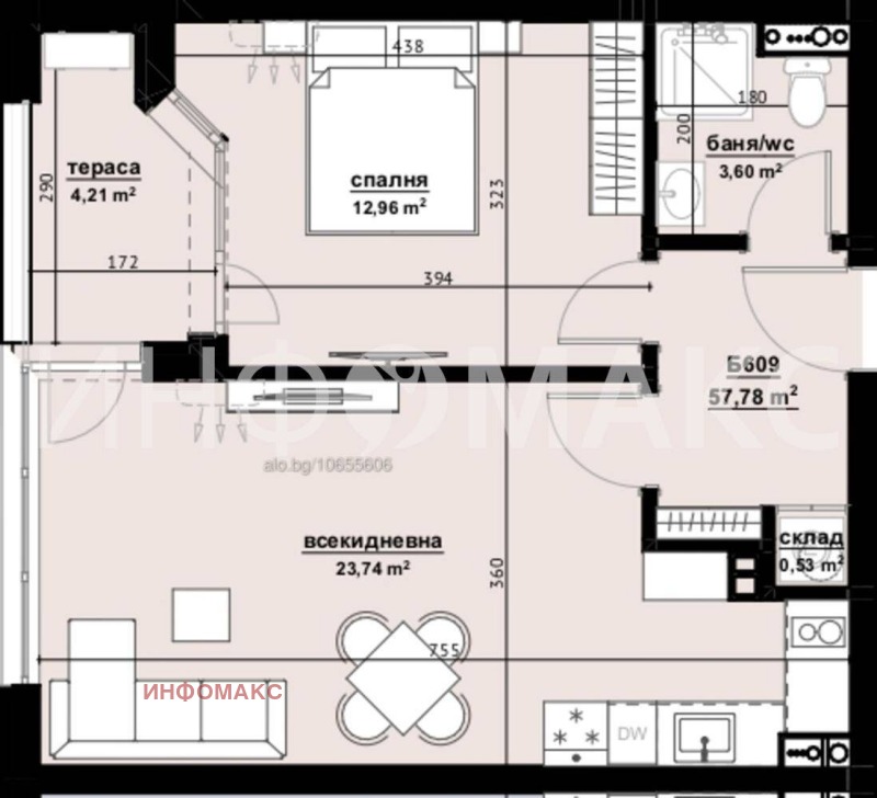 ✅ Застроена площ: 57,78 кв.м.